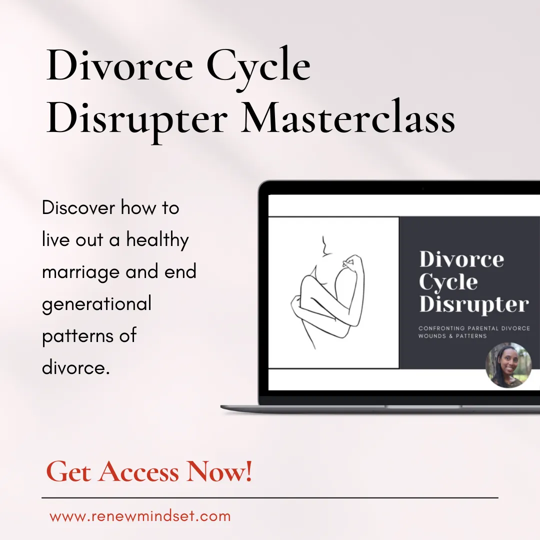 This FREE masterclass is for the Adult Child of Divorce who are ready to change the unspoken generational patterns and unintentional impact parental divorce has on their marriage.